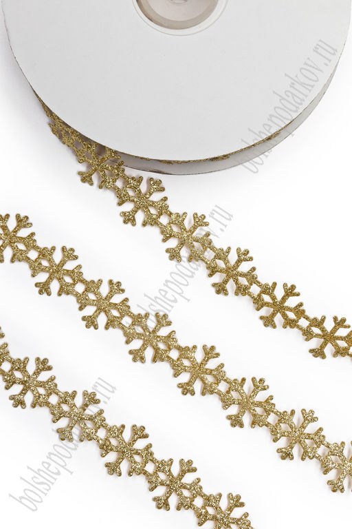 Лента фигурная с блестками 2 см*20 ярд "Снежинки" (SF-6135) золото