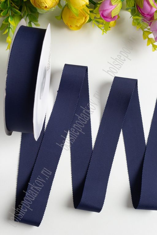 Лента репсовая с волнистыми краями 2.5 см (темно-синий №370) SF-1806