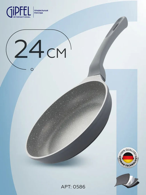 0586 GIPFEL Сковорода Veding 24х5 см с 3-слойным антипригарным покрытием ILAG Ultimate, с индукционным дном и бакелитовой ручкой Soft-Touch. Материал: литой алюминий. Толщина: 4/1.8 мм.