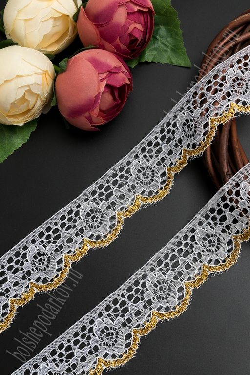Кружево 4 см*15 ярд (SF-5916) белый/золото №15