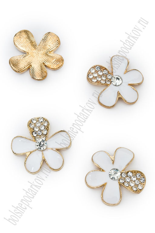 Кабошон флоризель металл "Цветочек" (4 шт) SF-7242, белый