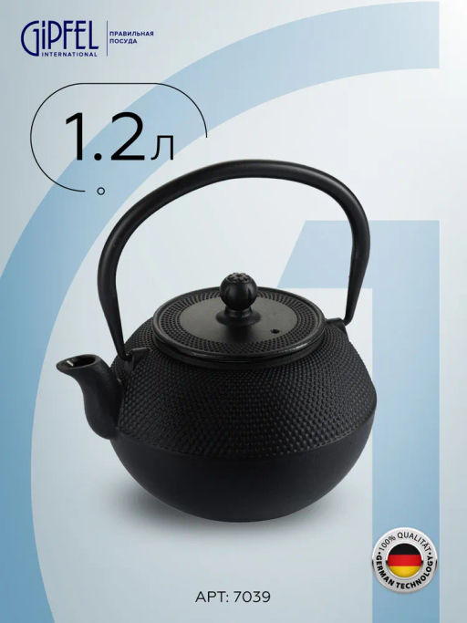 7039 GIPFEL Чайник чугунный NAGOYA тэцубин 1200мл с фильтром из нерж.стали 18/10. Цвет: черный