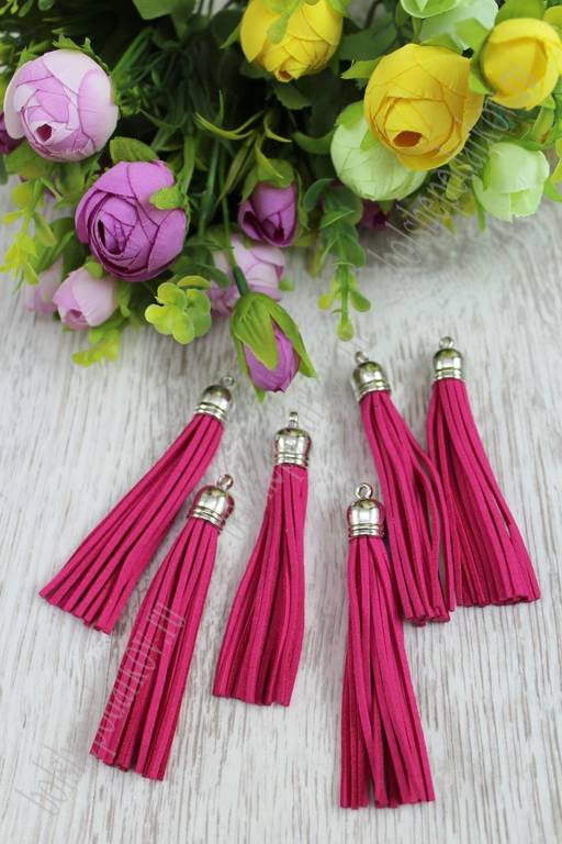 Кисточки замшевые с серебряным колпачком 8,5 см (10 шт) SF-1654, фукси №6052