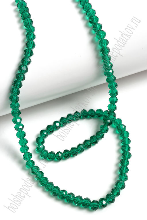 Бусины стеклянные, прозрачные, на леске "Rondelle" 4 мм (SF-658) изумрудный №101
