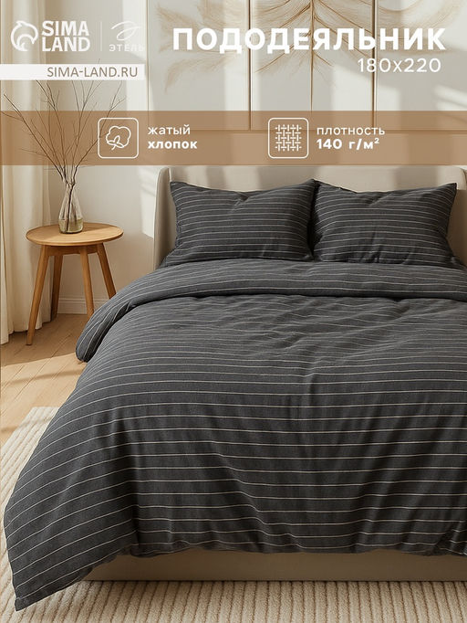 Пододеяльник 2-спальный Этель Quiet shade, 180220 см, жатый хлопок