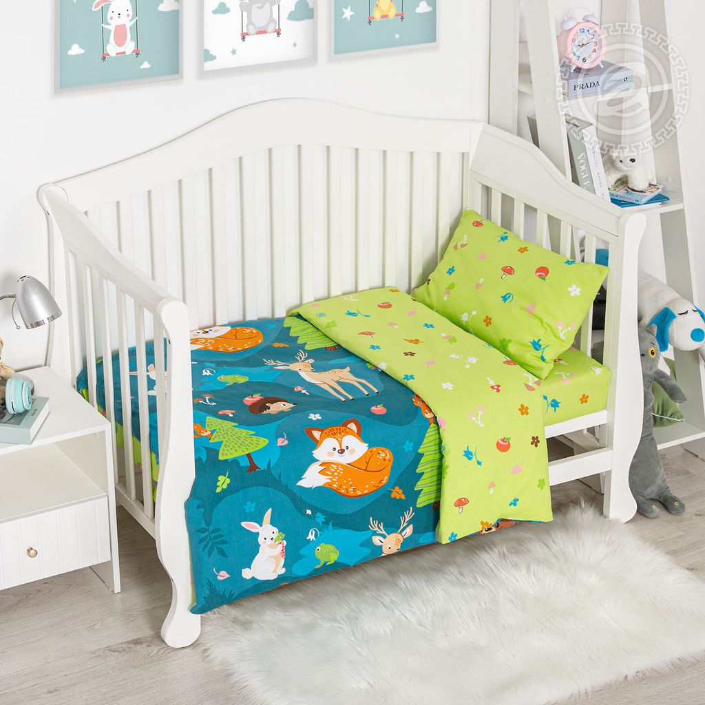 Постельное белье На опушке (бязь ясельная) Детский/Пододеяльник: 1 шт. - 147*112; Простыня: 1 шт. - 150*110; Наволочка: 1 шт. - 40*60; Бязь ясельная