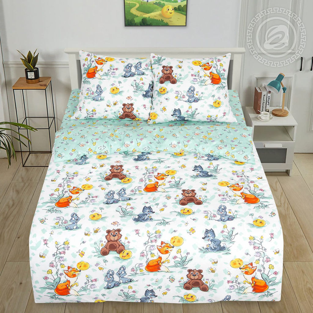 Постельное белье Колобок (поплин детский) 1,5 сп./Пододеяльник: 1 шт. - 215*145; Простыня: 1 шт. - 214*150; Наволочка: 2 шт. - 70*70; Поплин детский