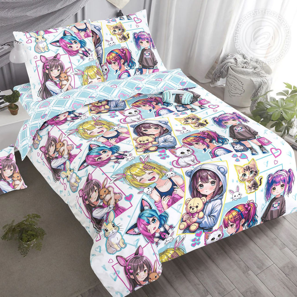 Постельное белье Лоли (поплин детский) 1,5 сп./Пододеяльник: 1 шт. - 215*145; Простыня: 1 шт. - 214*150; Наволочка: 2 шт. - 70*70; Поплин детский
