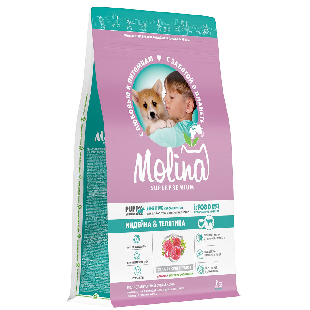 MOLINA, Сухой корм с инд и телятиной для щенков и молодых собак средних и крупных пород, 2кг,1060857