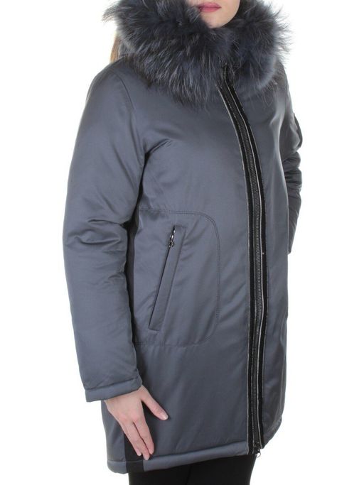 E-1961 DK. GREY Пальто женское с натуральным мехом Evcanbady