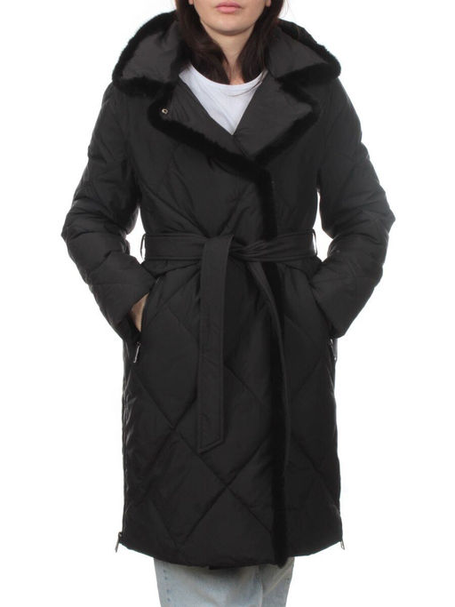 309 BLACK/BLACK Пальто зимнее стеганое женское (200 гр. холлофайбер, натуральная норка)