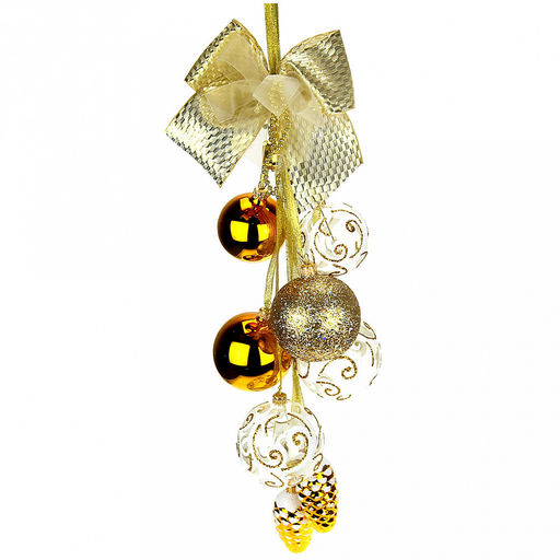 Елочная игрушка гирлянда стеклянная "Золотистая", 3 шишки 9см, 6 шаров: д6см - 2шт, д7,5см - 2шт, д8,5см - 2шт, ручная художественная роспись, подарочная упаковка (Россия)
