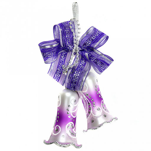 Елочная игрушка колокольчик стеклянная "Бубенчики" из 2шт, ручная художественная роспись, цвета микс, в подарочной коробке (Россия)