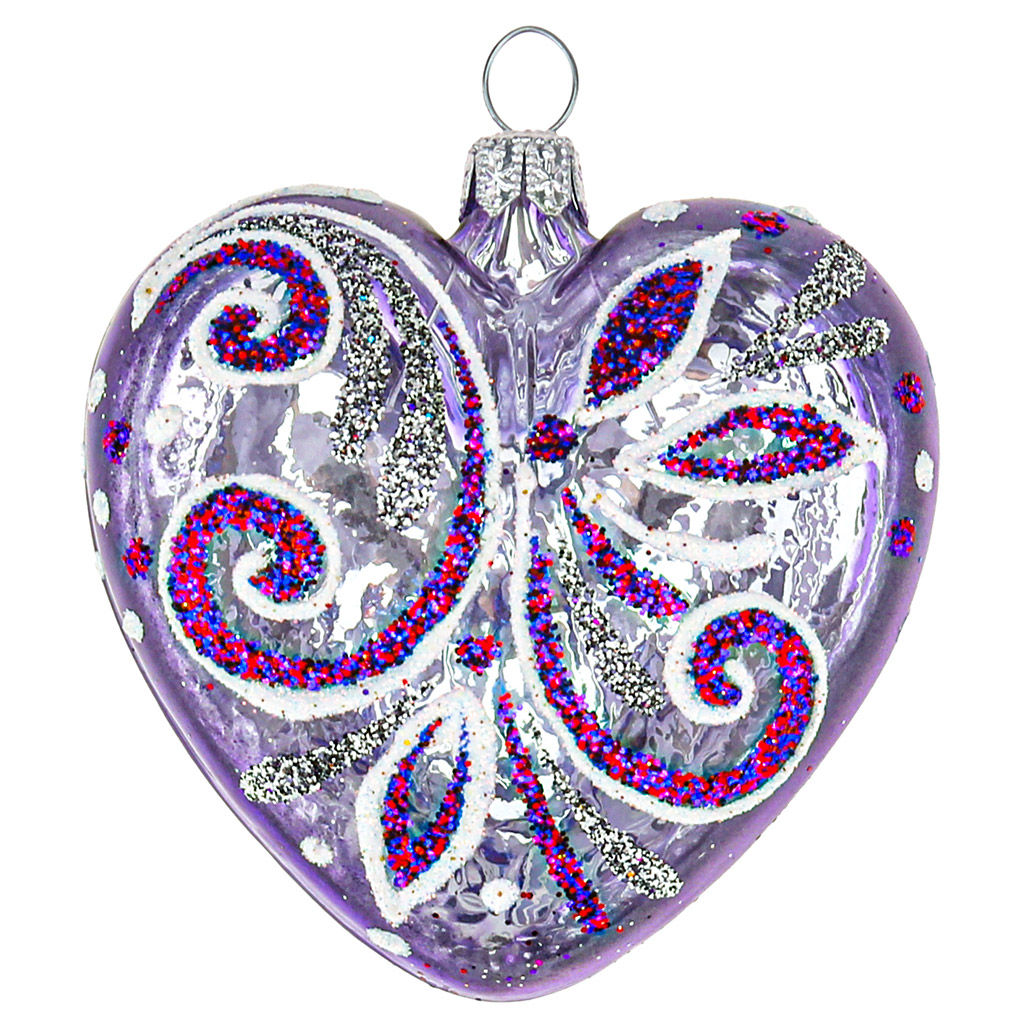 Елочная игрушка сердечко стеклянная "Изящное" h6,5см, ручная художественная роспись, цвета микс, подарочная упаковка (Россия)