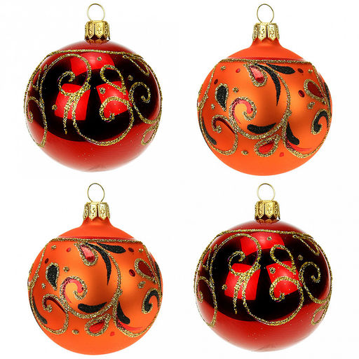 Елочная игрушка шар стеклянная "Боярушка" д6см, ручная художественная роспись, подарочная упаковка, набор 4шт (Россия)