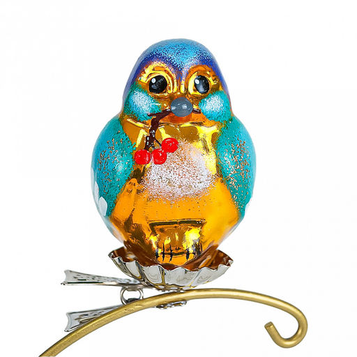 Елочная игрушка фигурка стеклянная "Певчая птичка-4" 4,5х5х7,5см, ручная художественная роспись, подарочная упаковка (Россия)