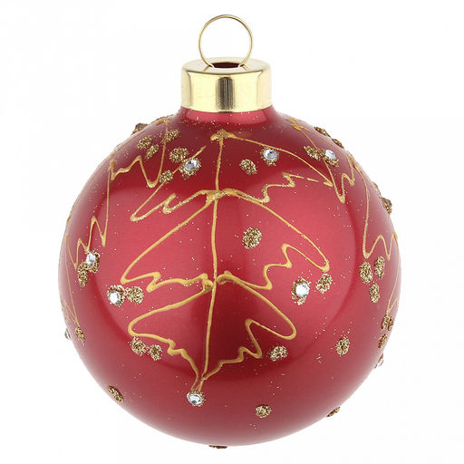 Елочная игрушка шар стеклянная д8см, зеркально-красный, ручная художественная роспись, подарочная упаковка (Россия)