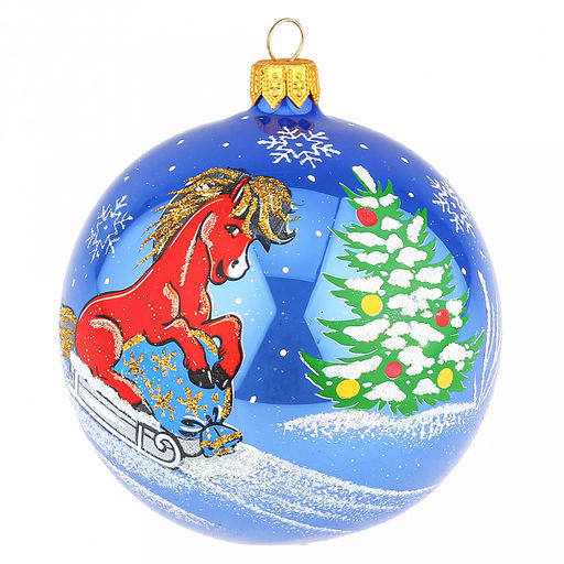 Елочная игрушка шар стеклянная "Зодиак. Лошадка" д9,5см, ручная художественная роспись, подарочная упаковка, цвета микс, "Символ 2026 года" (Россия)