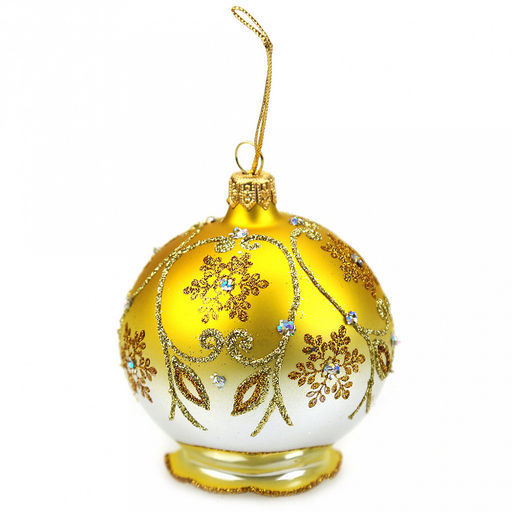 Елочная игрушка шар стеклянная "Эхо" д7,5см, юбка-колокольчик, ручная художественная роспись, подарочная упаковка (Россия)