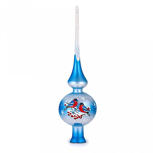 Елочная игрушка верхушка стеклянная "Снегири" д7см, h27,5см, ручная художественная роспись, красный/синий, подарочная упаковка (Россия)