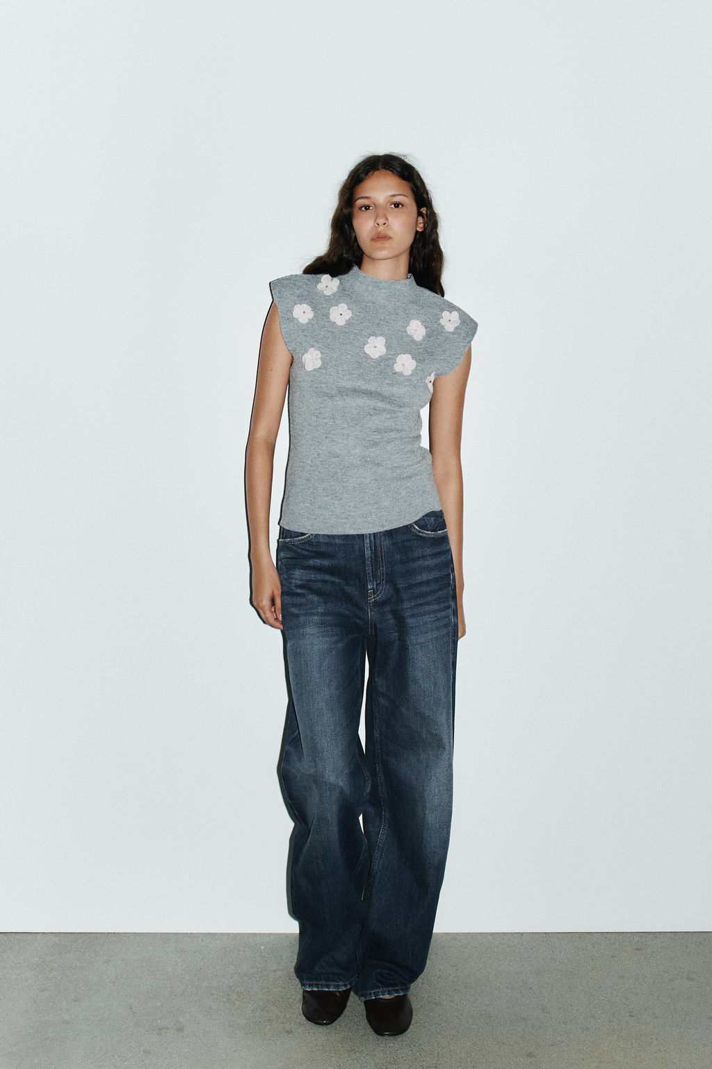 JEWEL EMBELLISHED RELIEF FLORAL TOP