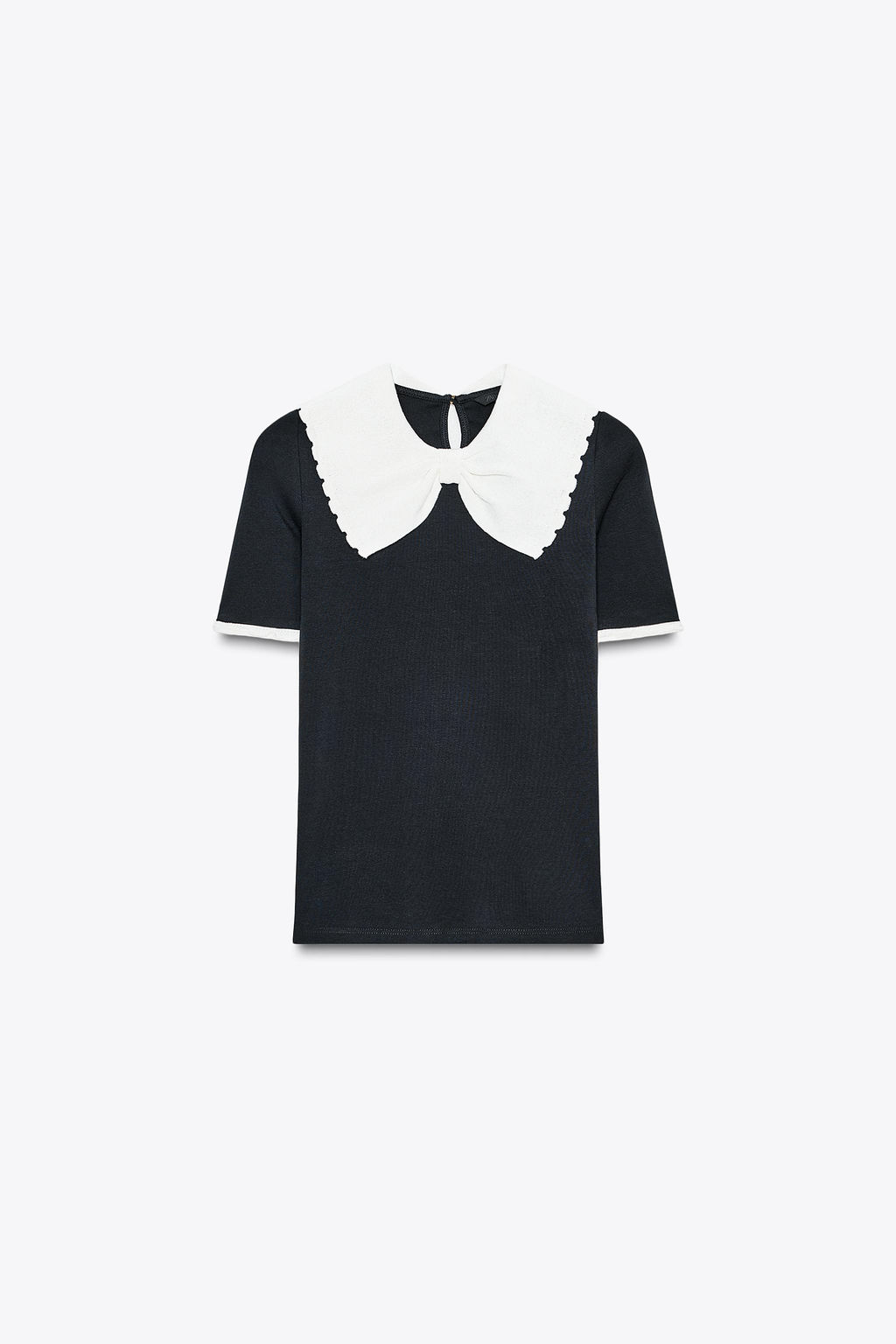 CHUNKY KNIT COLLAR T-SHIRT WITH BOW