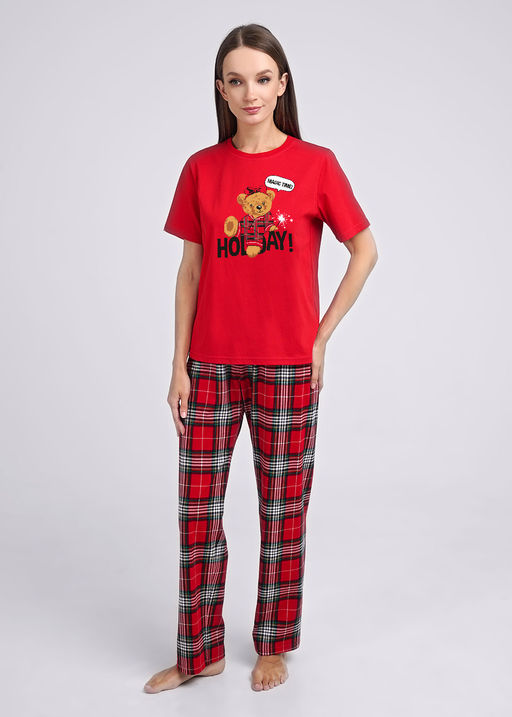 Артикул: CLE LP14-1138/3 Пижама жен. Новый год красный/т.синий