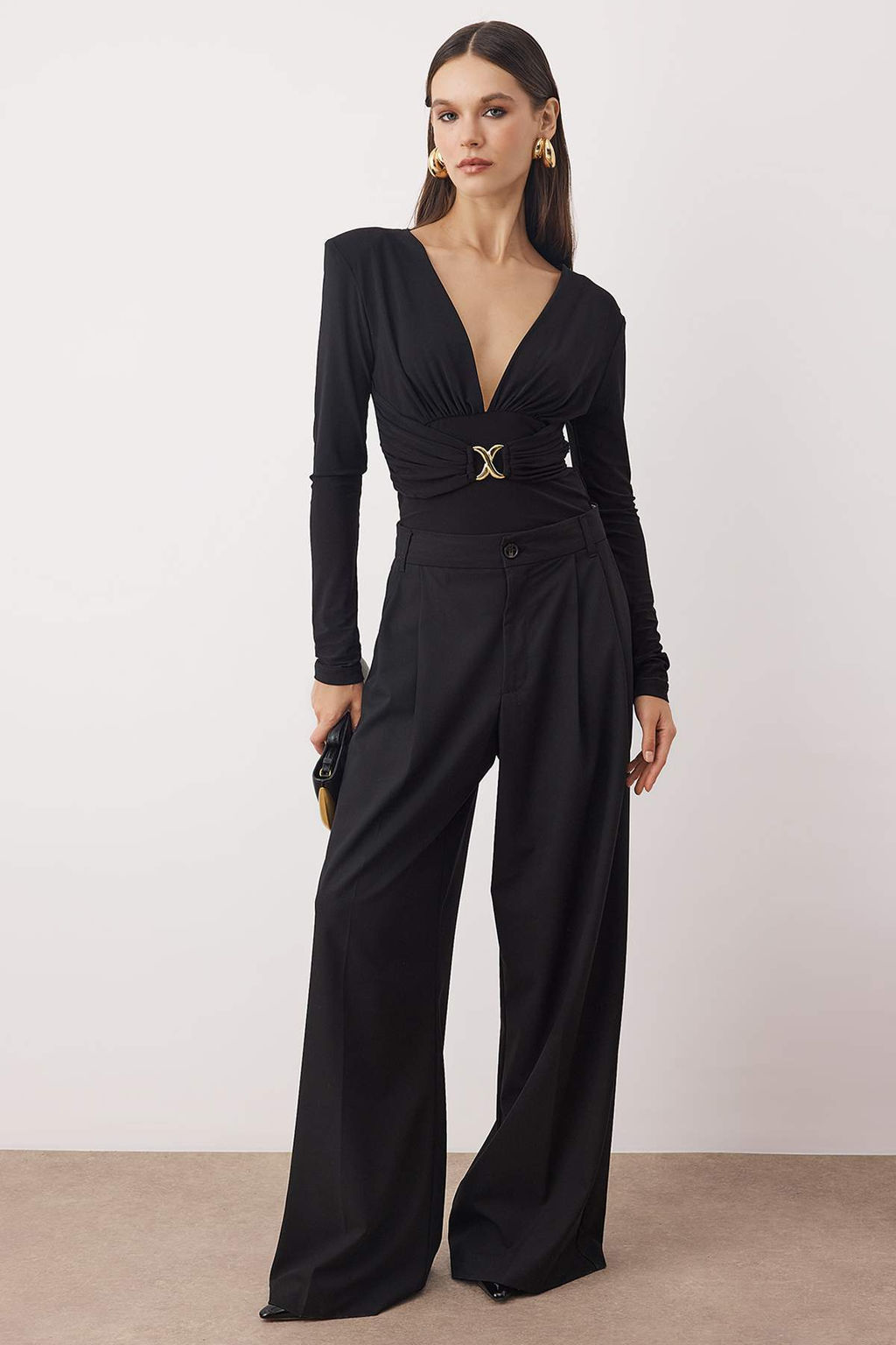 Siyah Duz V Yaka Uzun Orme Sandy Body TPRAW26BD00021