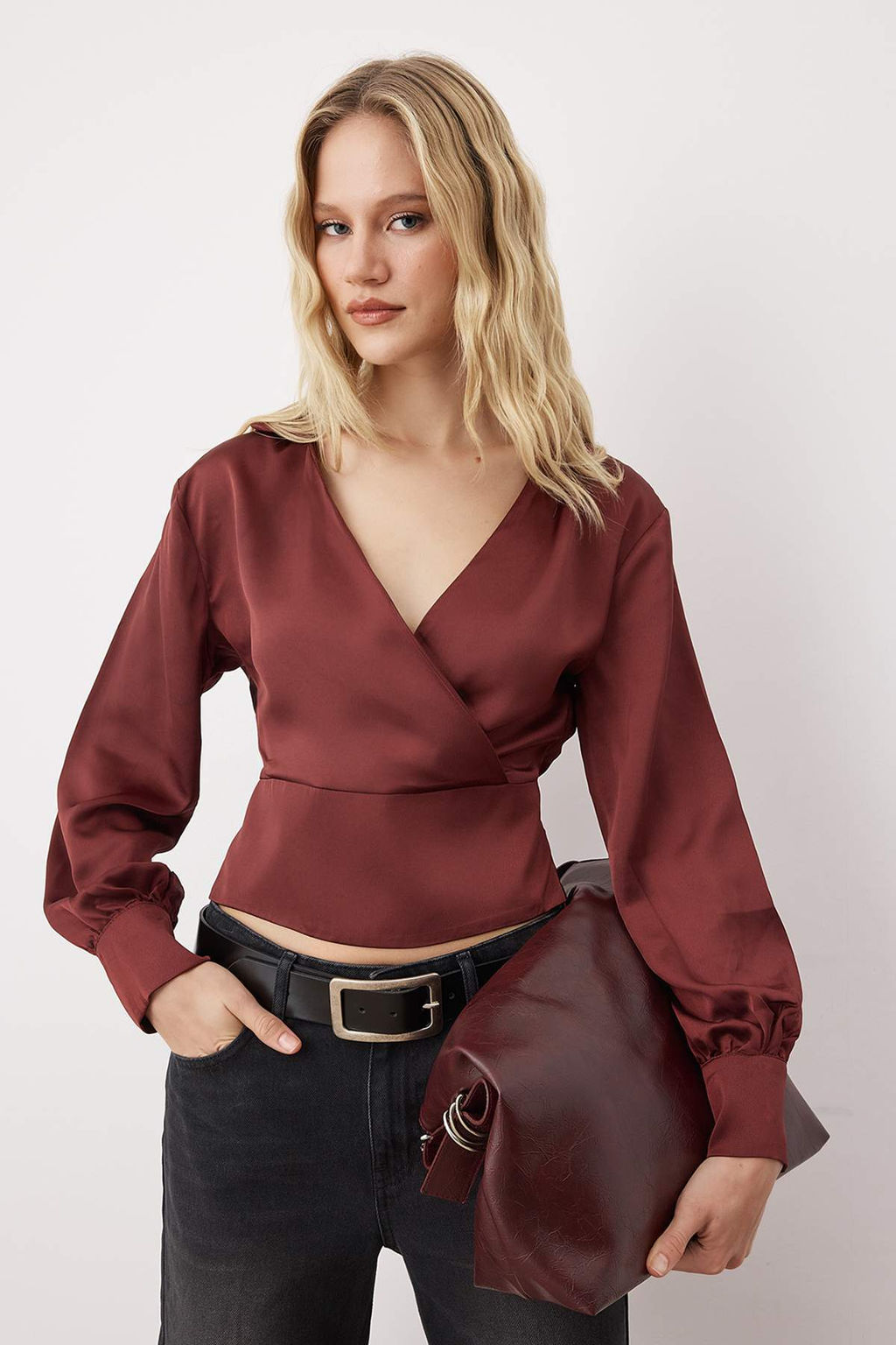 Kiremit Fitted Korsaj Detayl? Saten Dokuma Bluz TWOAW26BZ00254