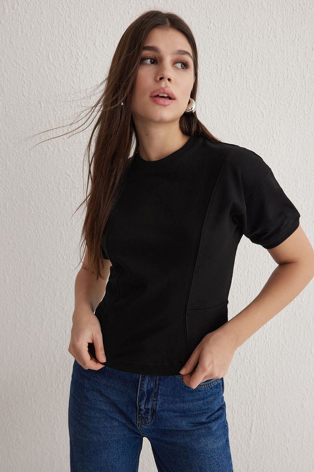 Trendyolmilla Siyah Fitted/Vucuda Oturan Bisiklet Yaka Esnek Orme Bluz TWOSS25BZ00009