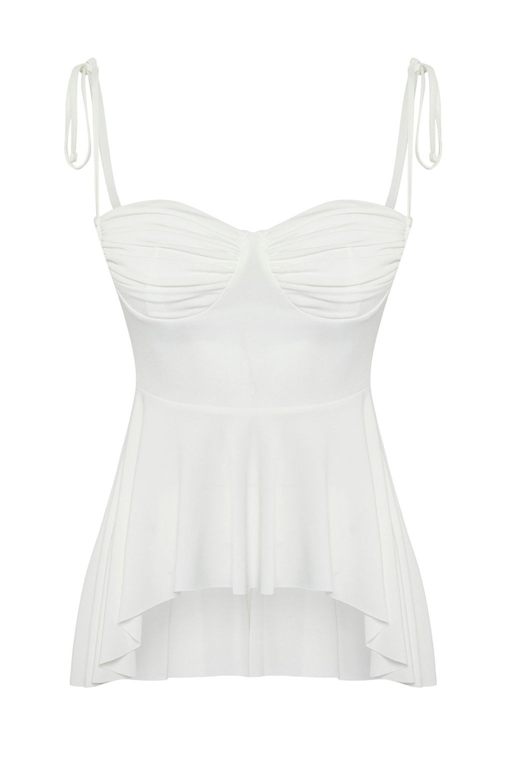 Trendyolmilla Beyaz Gogus Detayl? Orme Bluz TPRSS25BZ00006