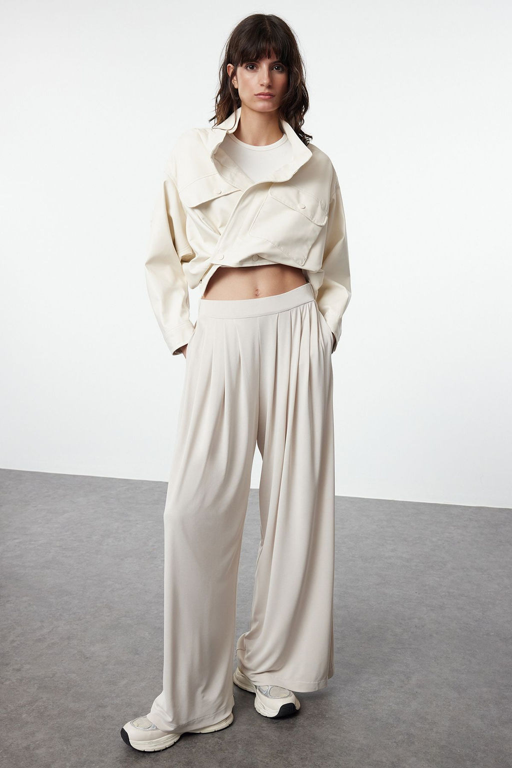 TRENDYOLMILLA Tas Pilili Wide Leg/Rahat Kesim Esnek Orme Pantolon TWOAW25PL00073