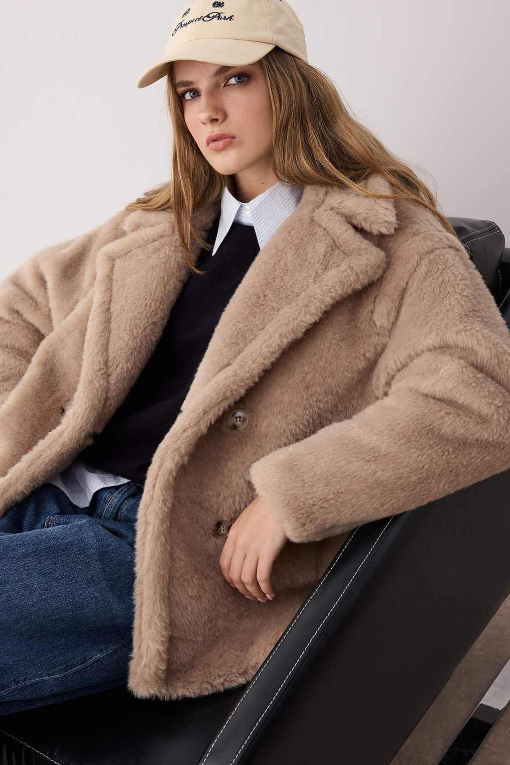 Vizon Kurklu Kruvaze Oversize K?sa Pelus Kaban TWOAW26KB00021