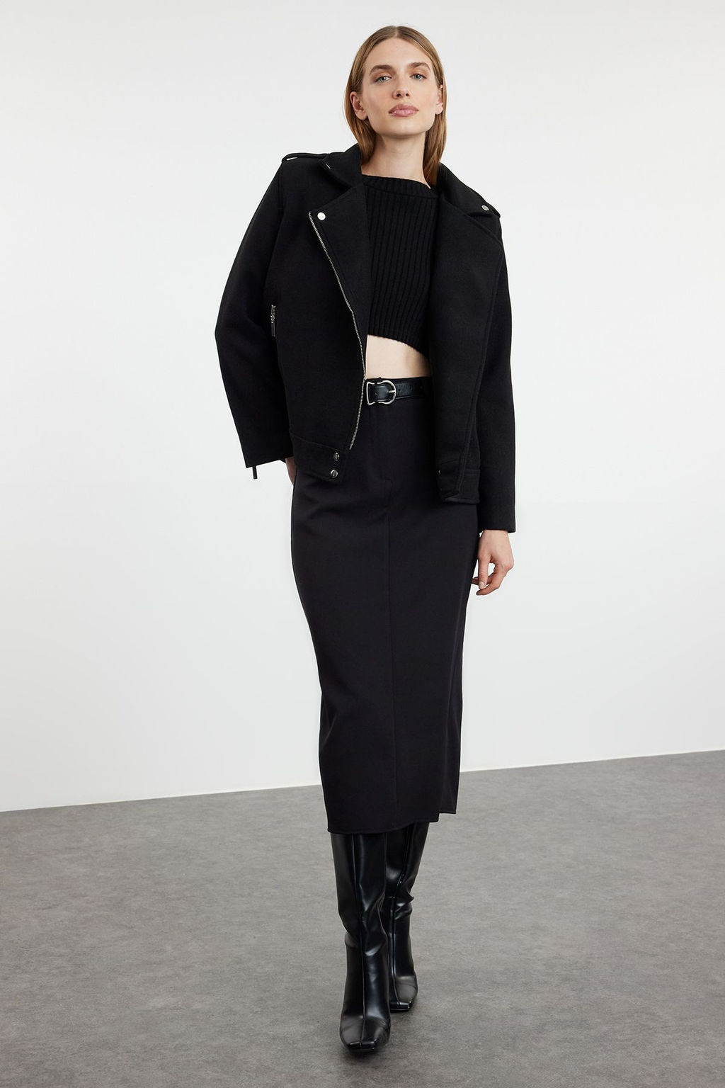 TRENDYOLMILLA Siyah Regular Kase Biker Ince Ceket Mont TWOAW25MO00131