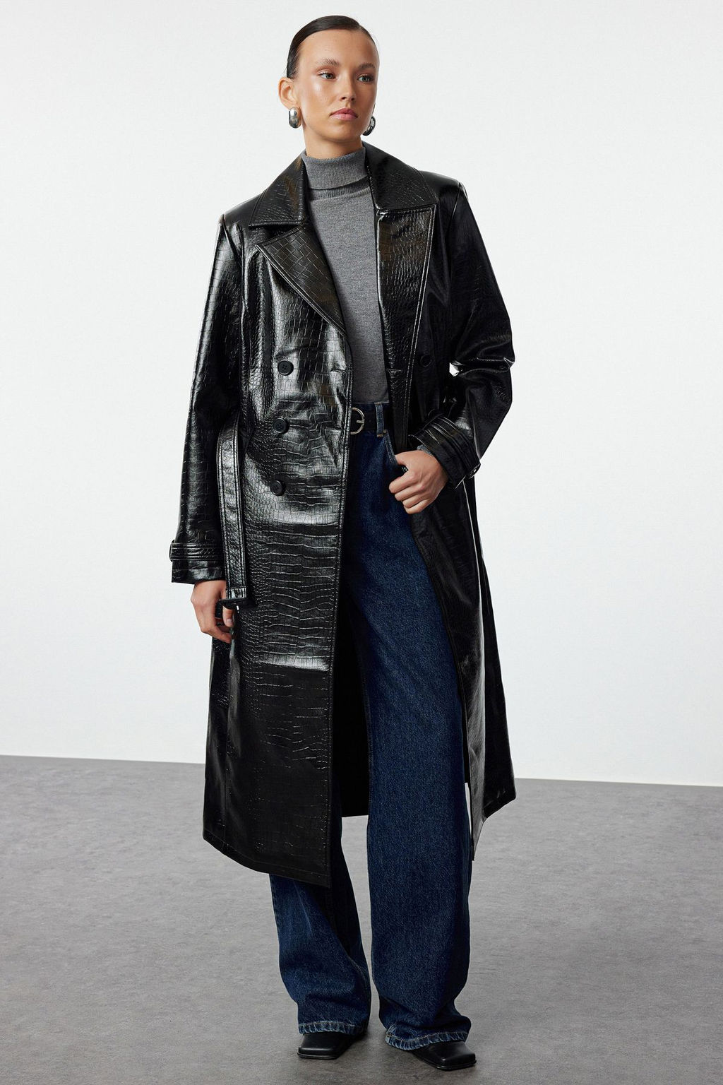 Trendyolmilla Siyah Regular Kemerli Trenckot TWOAW25TR00001