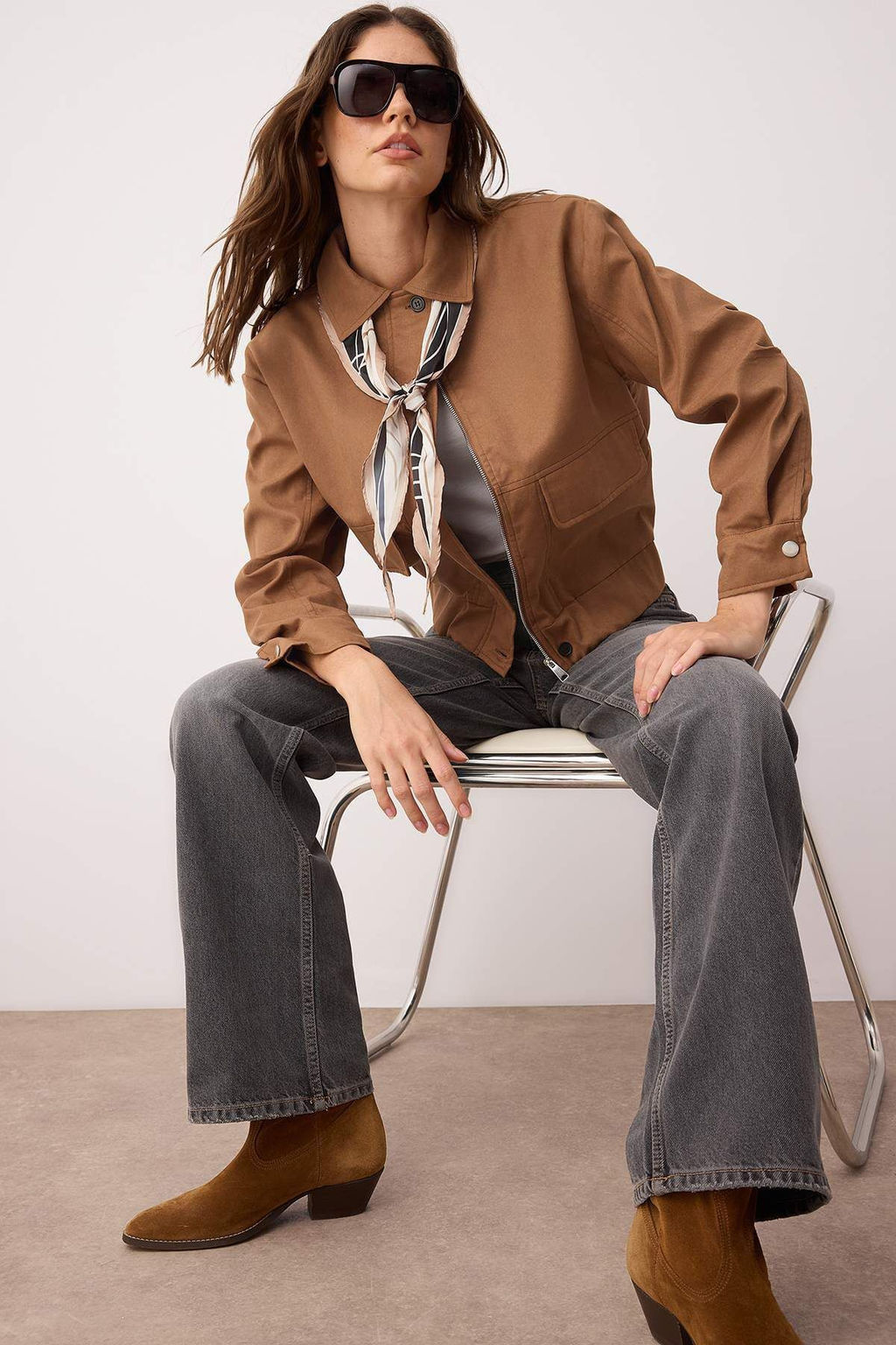 Kahverengi Oversize Kal?p Suet Bomber Ince Ceket Mont TWOAW26MO00126