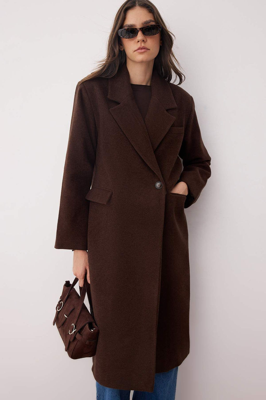 Kahverengi Mono Kapama Oversize Uzun Kaban TWOAW26KB00032
