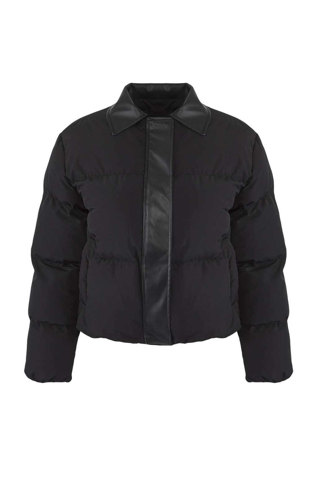 Siyah Oversize Kal?p Yakas? Suni Deri Detayl? Sisme MontTWOAW26MO00140