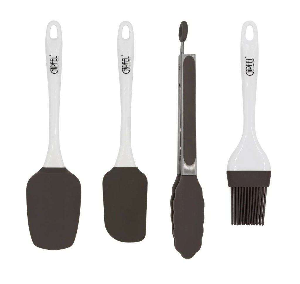 51729 GIPFEL Набор кухонных аксессуаров SINTY из 4 пр. (щипцы 23см, кисточка 22см, лопатка узкая 25см, лопатка широкая 25,5см). Материал: силикон, нерж. сталь, пластик. Цвет: бежевый