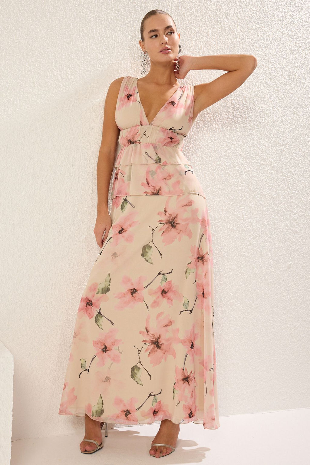 TRENDYOLMILLA Cok Renkli Astarl? Sifon Dokuma Maxi S?k Abiye Elbise TPRSS25AE00041