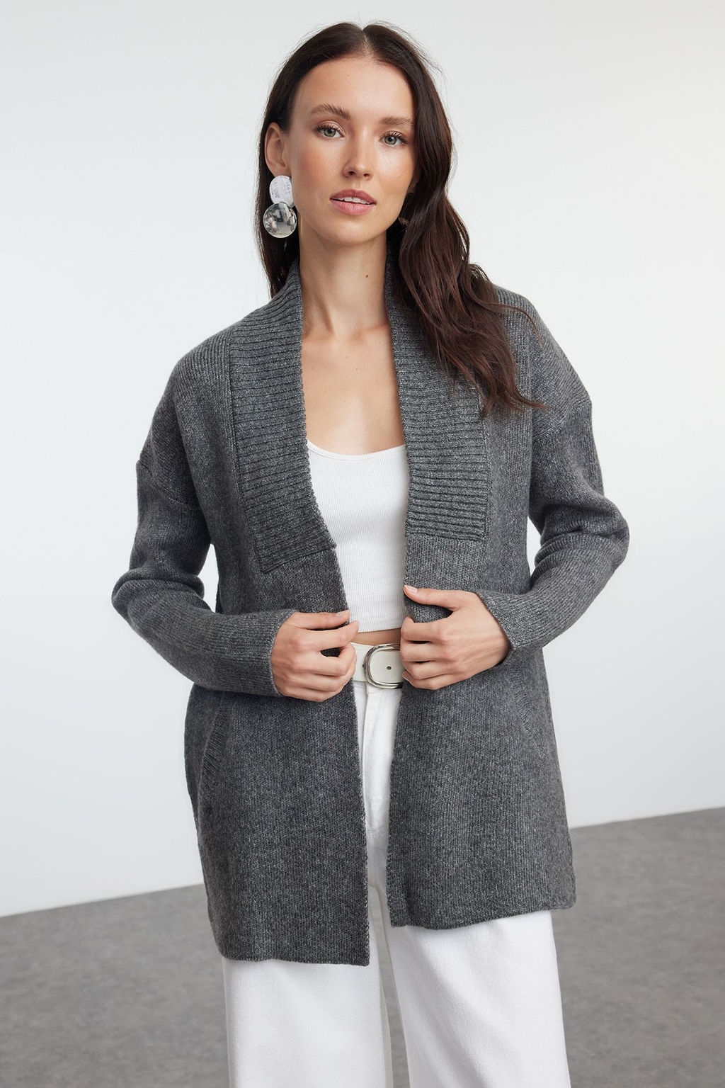 TRENDYOLMILLA Antrasit Genis Kal?p Yumusak Dokulu Triko H?rka TWOAW25HI00082