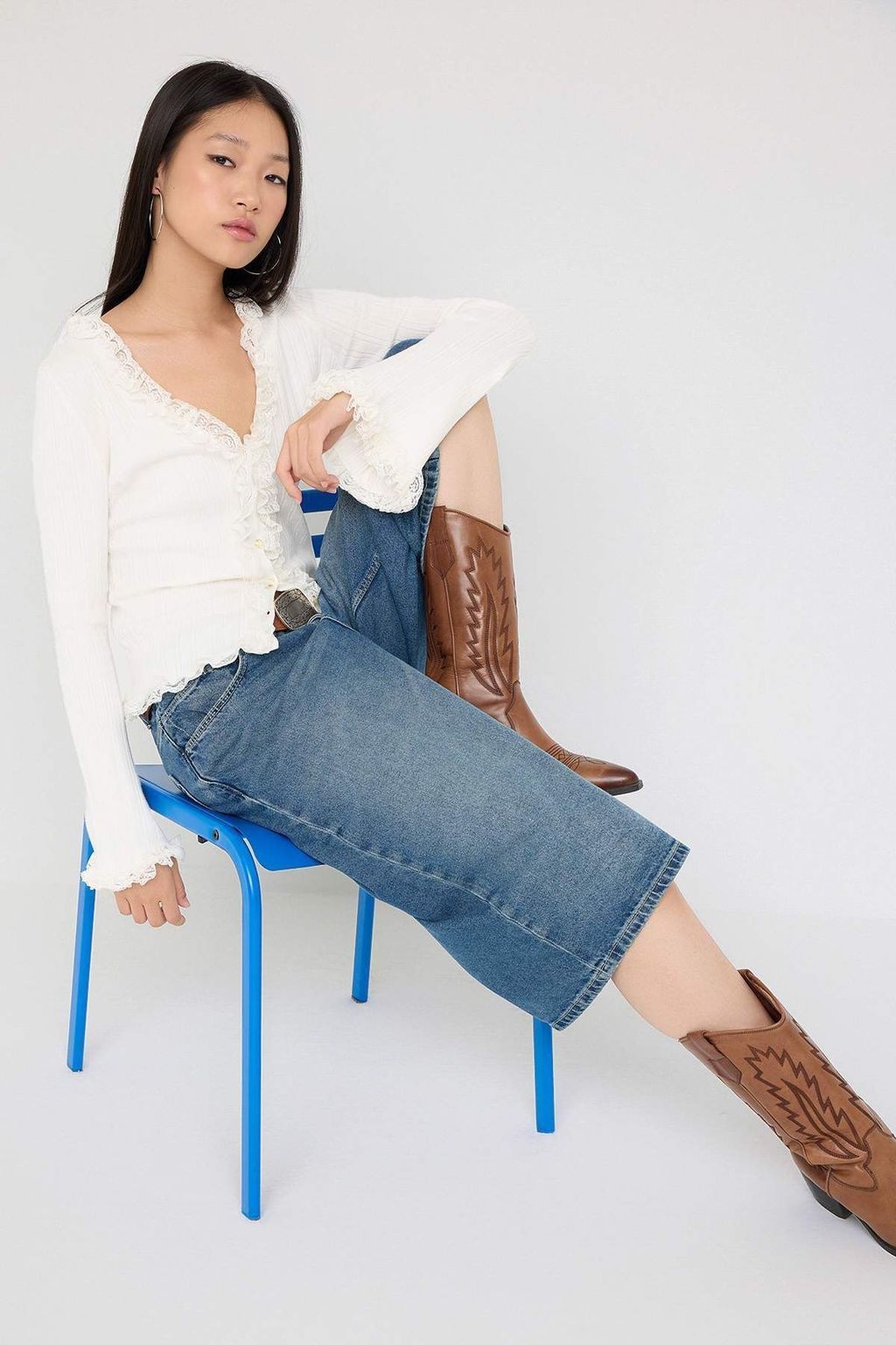 Teen Ekru V Yaka Dantel Garnili Premium/Ozel Iplikli Fitted/Vucuda Oturan Triko H?rka TWOAW26HI00098