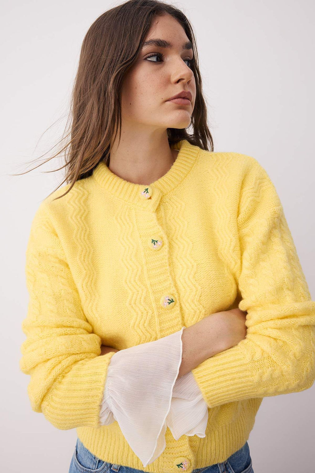 Sar? Yumusak Dokulu Dugme Detayl? Genis Kal?p Triko H?rka TWOAW26HI00153