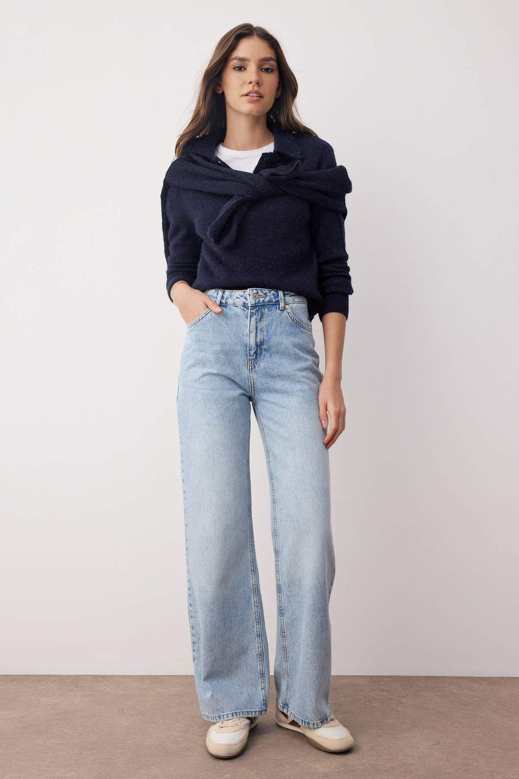Ac?k Mavi Yuksel Bel Genis Paca Wide Leg Jeans TWOAW26JE00074