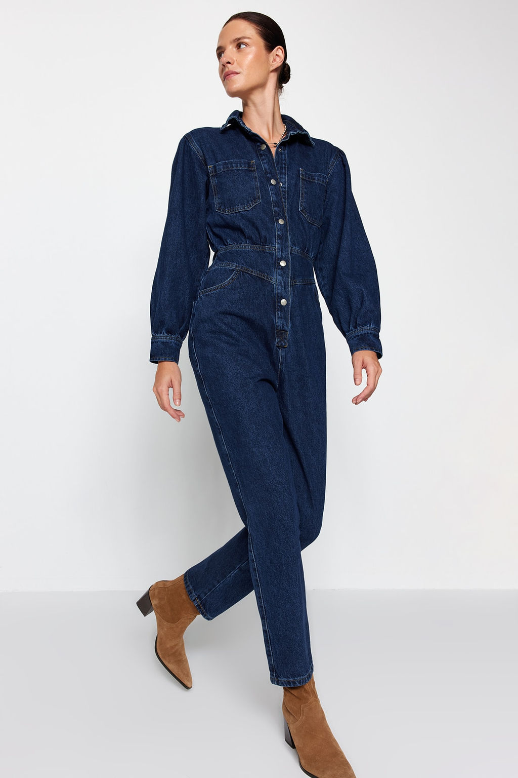 TRENDYOLMILLA Lacivert Balon Kollu Denim Tulum TWOAW22TU0041