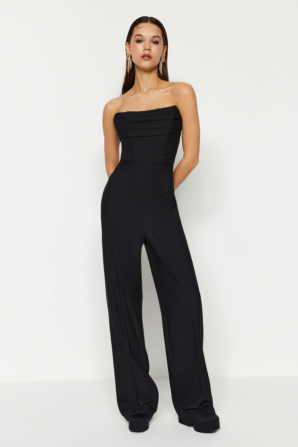 TRENDYOLMILLA Siyah Korse Detayl? Dokuma Tulum TPRSS24TU00002