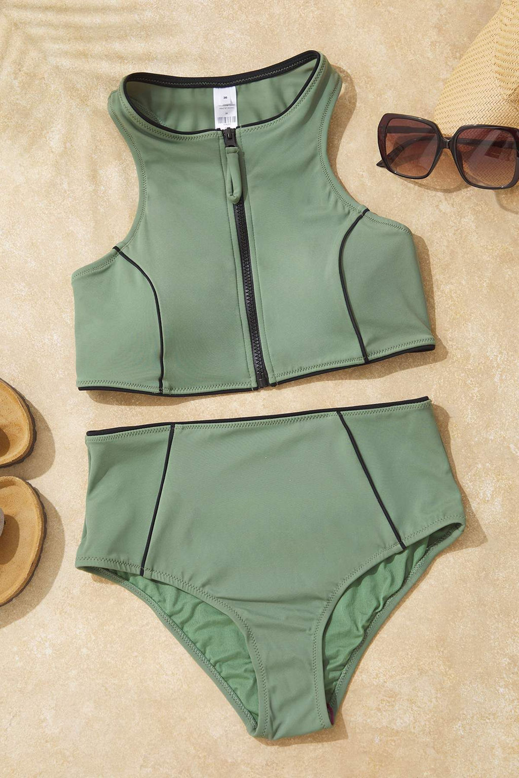 TRENDYOLMILLA Haki Halter Yaka Fermuarl? Regular Bikini Tak?m? TBESS25BT00090
