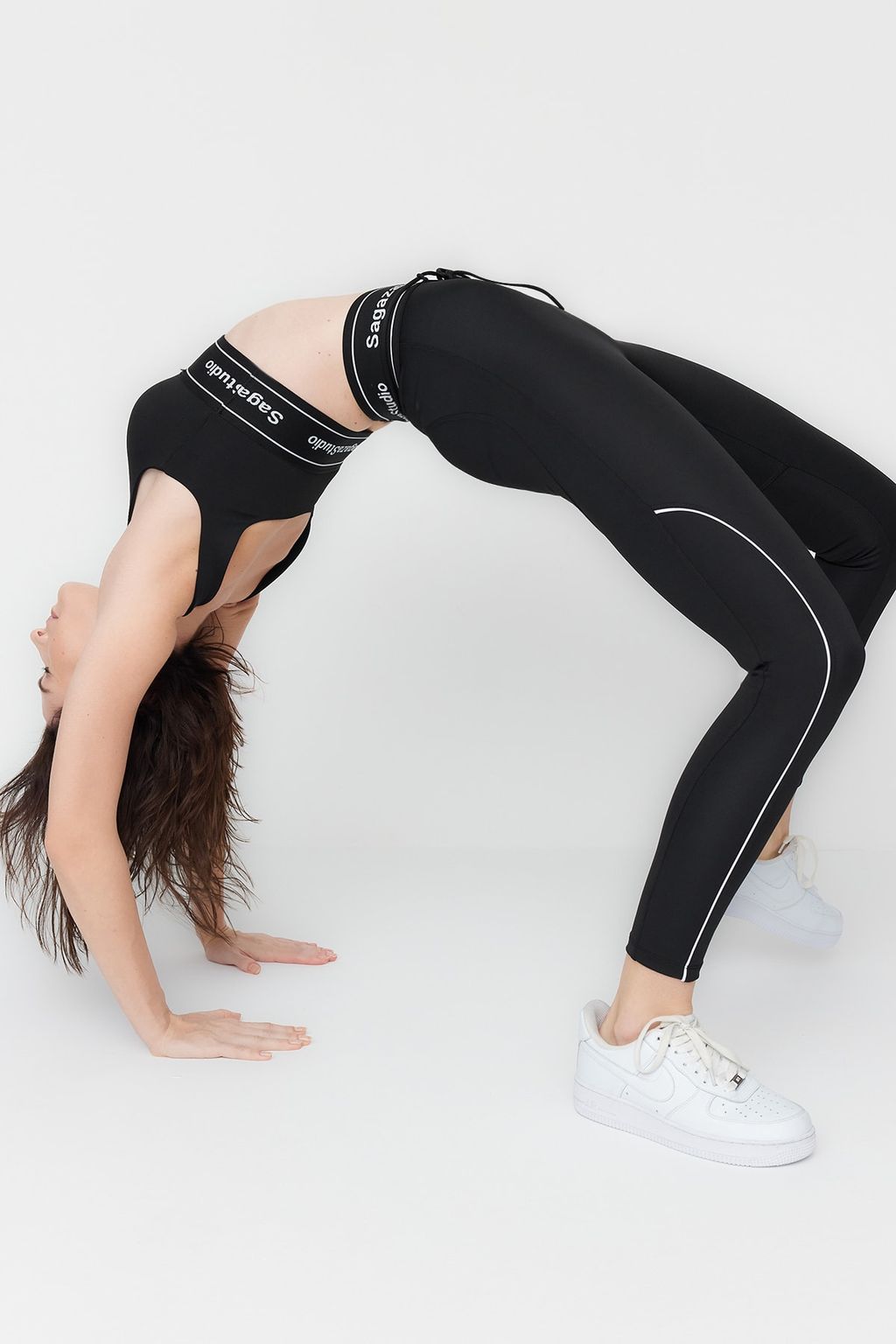 X Sagaza Studio Siyah Toparlay?c? Kordon Biye Detayl? ve Push Up Dikisli Spor Tayt