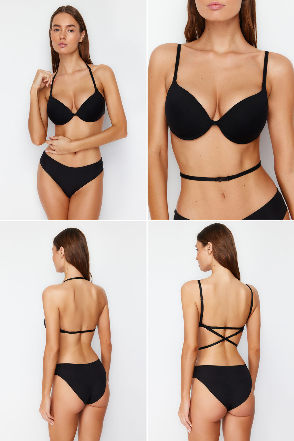 TRENDYOLMILLA Premium Siyah Micro 4 Farkl? Kullan?ml? Dolgulu Kapl? Dekolte Orme Sutyen THMSS24SU00022
