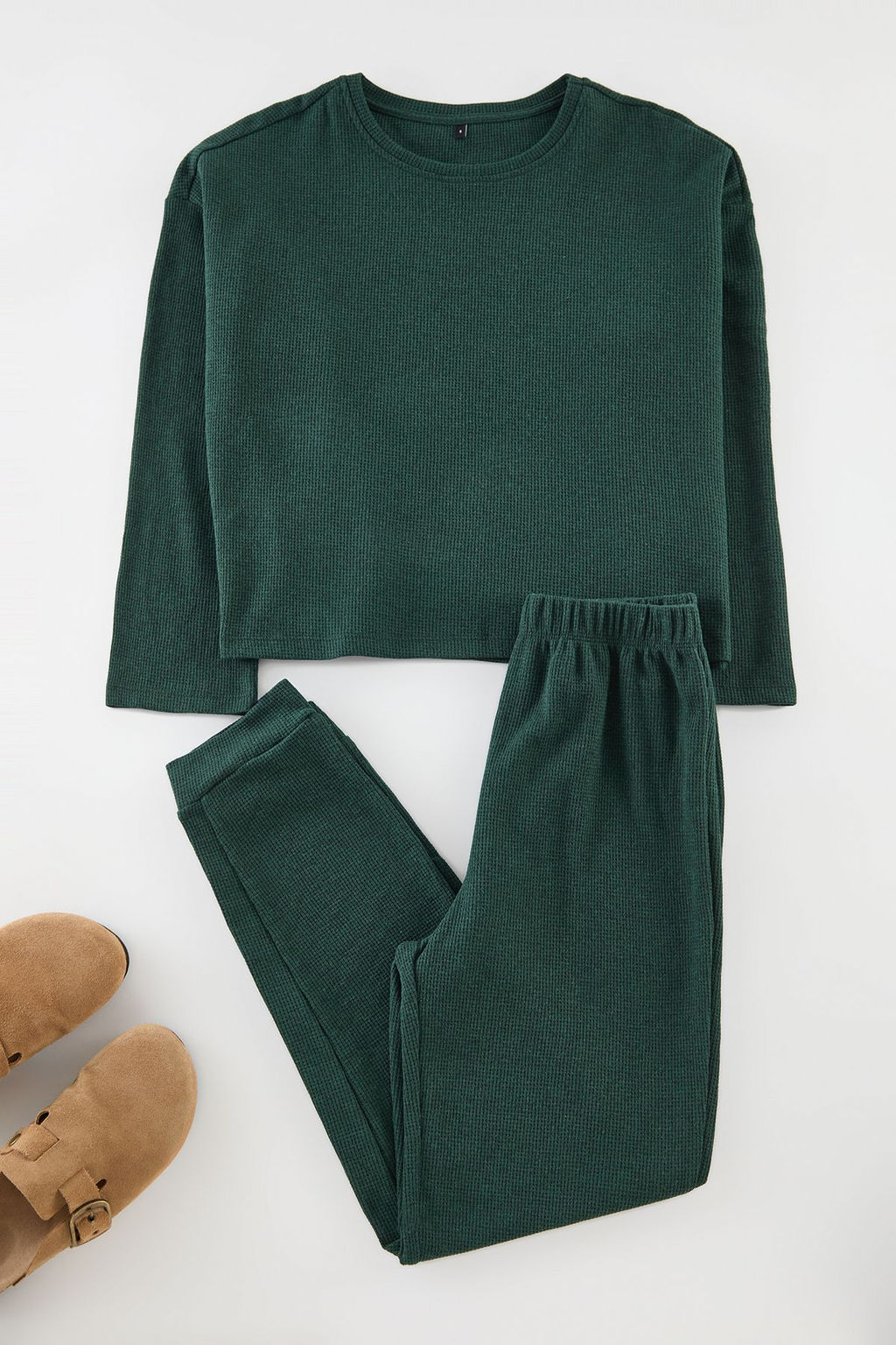 Trendyolmilla Lacivert Waffle Kumas Orme Pijama Tak?m? THMAW23PT00021